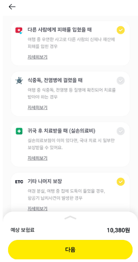 보험사 공식 앱으로 가입시, 출발 전 가입 완료 가능